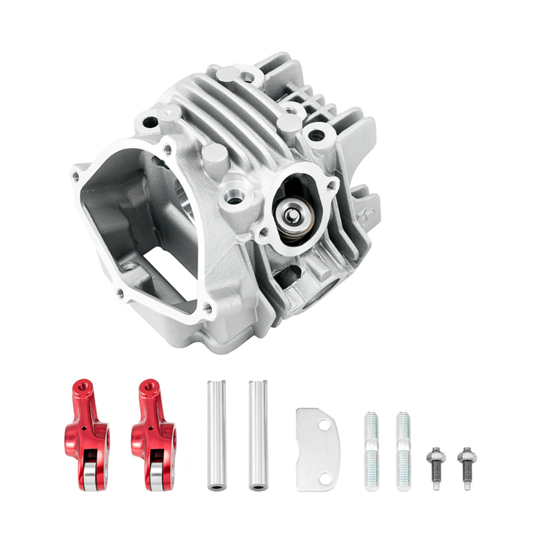 Our V2 Race head has numerous advantages over the stock head. Starting with the addition of forged aluminum roller rocker arms and our V2-2 camshaft. Not only do the aluminum roller rockers free up big horsepower, but you can also run much more aggressive cam profiles with roller rockers for even more power. Next is the bigger valves 30mm intake and 24.5mm Exhaust. The intake and exhaust ports are equally as improved at 27/23mm. Both valves are stainless steel too (21-4N material). The valves also come installed, complete with high lift heavy duty valve springs. This all adds up to a cylinder head that puts out a professional level of performance and power yet is still affordable for the privateer rider.