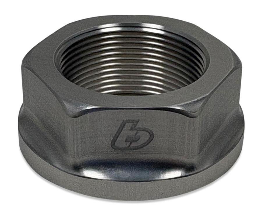 This top clamp nut features an integrated flanged design for superior clamping force and load distribution, eliminating the need for a washer. By replacing the heavy OEM steel nut and washer, this billet Aluminum upgrade reduces weight at the top of the front end while maintaining outstanding durability and corrosion resistance.