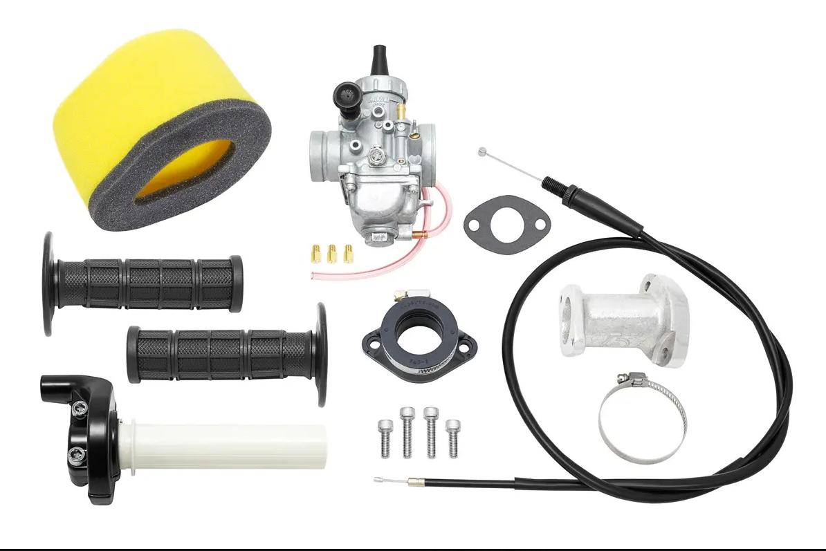 This awesome upgrade uses a Mikuni VM26 26mm carburetor and intake kit designed specifically for the Kawasaki KLX140 to provide better throttle response and more power then stock. This kit is designed to be used with the stock airbox.